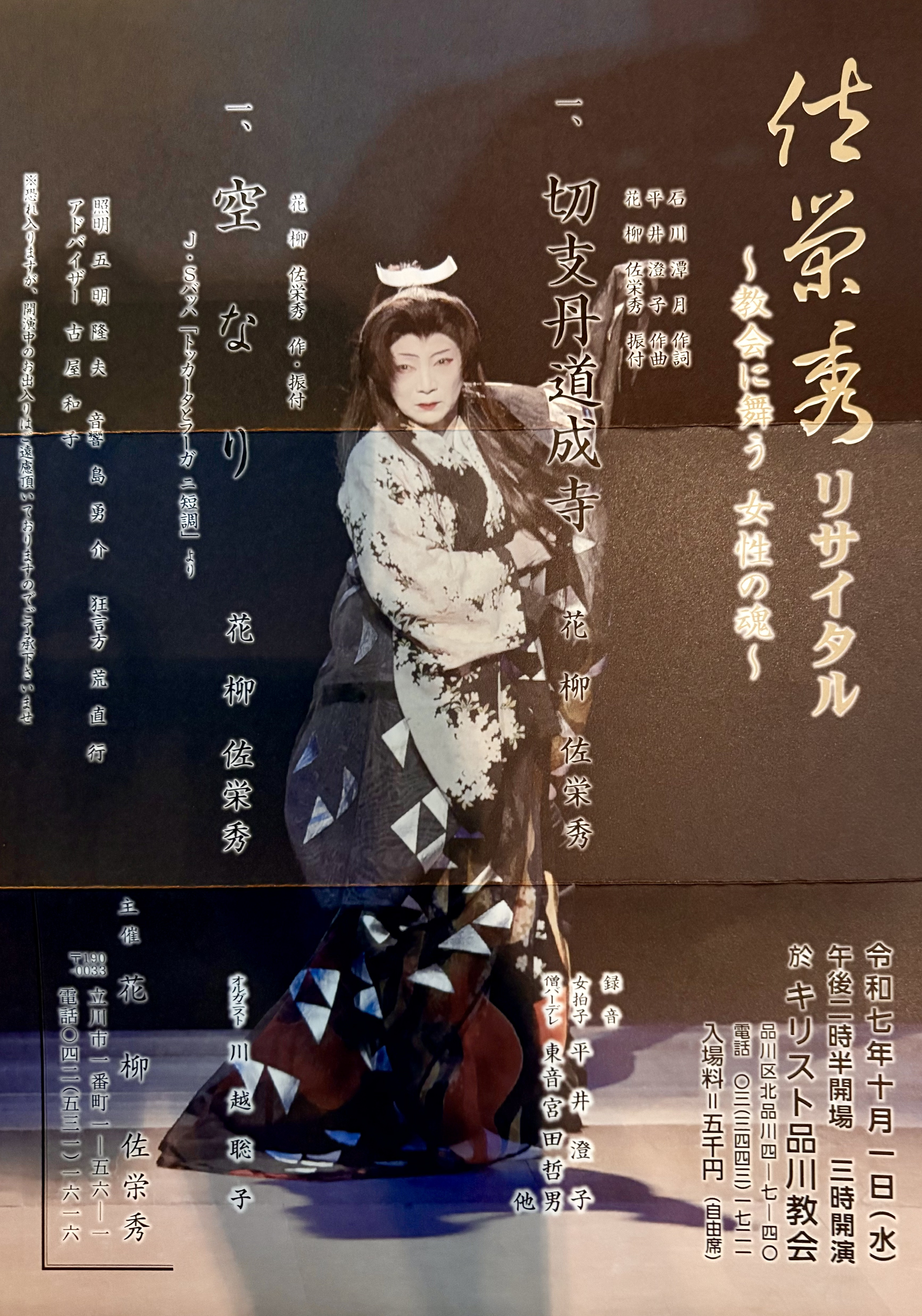 ご無沙汰しております。今月は色々と本番が続きますが、まずは10/1にキリスト品川教会にて、なんと日本舞踊のリサイタルで演奏させていただきました!!