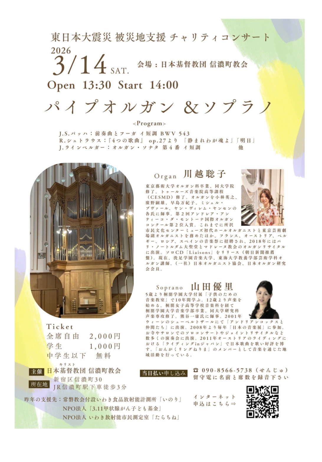 ②日本基督教団信濃町教会 東日本大震災被災地支援チャリティコンサート 3月14日(水)14:00-